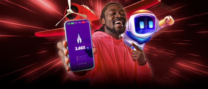 O jogo começa assim que o jogador faz uma aposta e o foguete, o avião, o balão ou outro objeto voador decola.