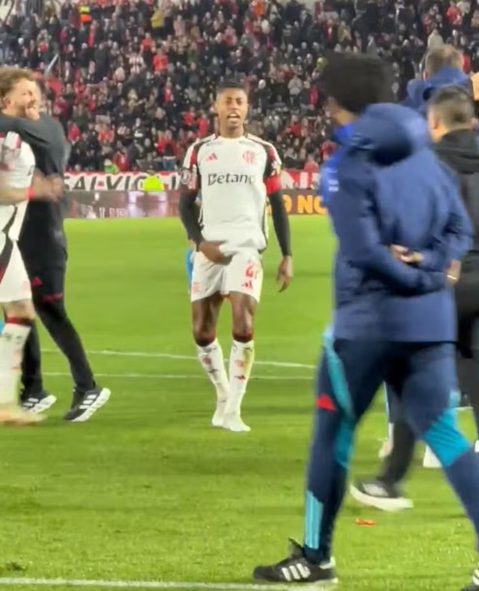 Neste momento, Bruno Henrique resolveu responder e provocou de volta os torcedores, que seguiam tentando machucar os jogadores do Flamengo com objetos atirados. A Conmebol preferiu focar na resposta do atleta, que quase foi agredido por um dos itens.