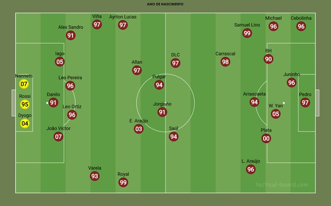 O Flamengo teve média de idade de 29,8 anos no Brasileirão Betano 2025. É o número mais alto desde 2014, quando o FBref começou registrar esses dados. O recorde era 27,8 anos em 2017.