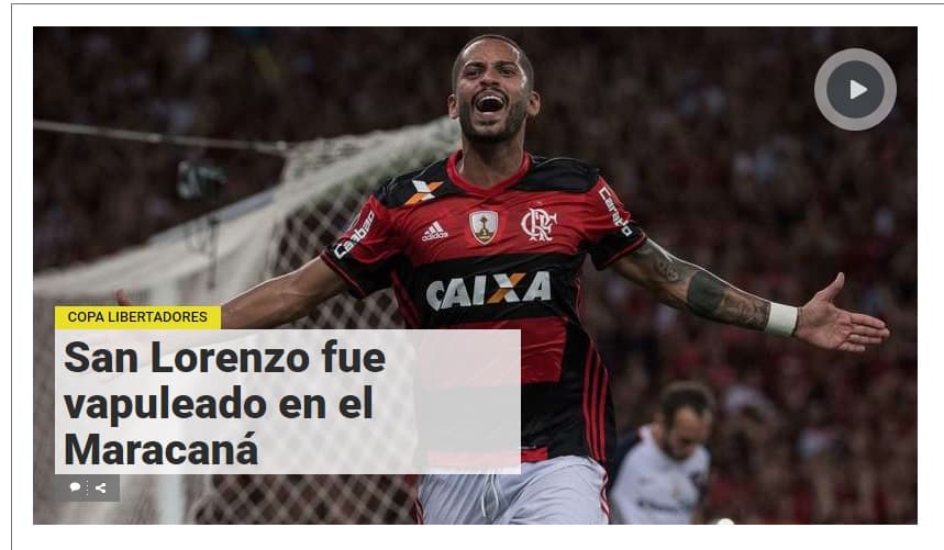 O jornal chamou a derrota do San Lorenzo de "estrepitosa" e disse que o Flamengo aplicou uma "surra" na equipe argentina.