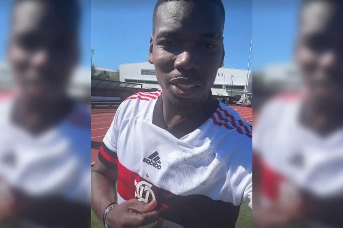 Pogba treina com Manto autografado por Zico